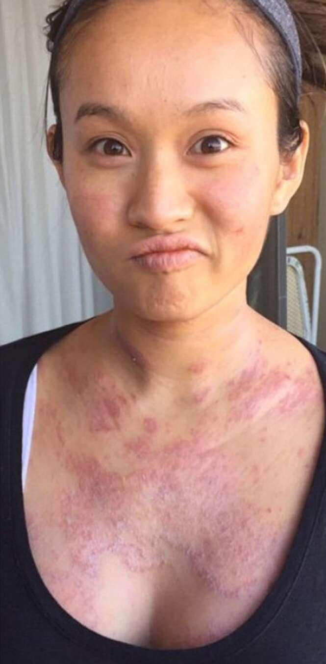 Christine Nguyen, de 27 anos de idade, de Colorado, EUA, teve que abandonar seu trabalho como esteticista e reivindicar por benefício por conta de incapacidade após ter desenvolvido um grave eczema, inflamação na pele que causa coceira, inchaço e vermelhidão.